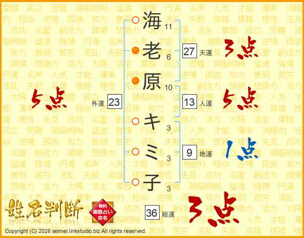 海老原キミ子さんの総運は36画の3点!