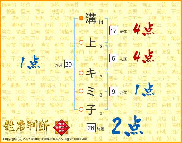 溝(14画)上(3画) キ(3画)ミ(3画)子(3画)