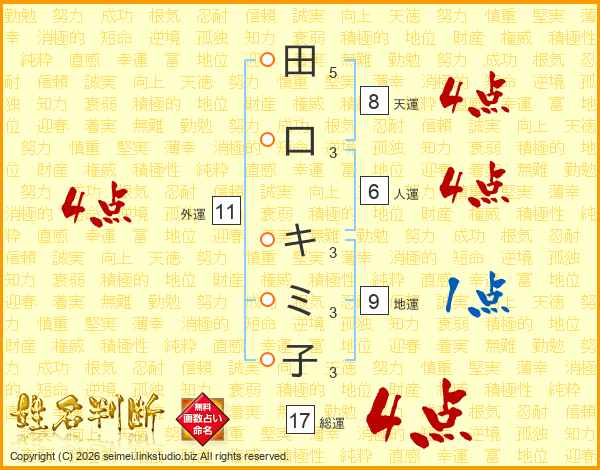 田口キミ子さんの総運は17画の4点!