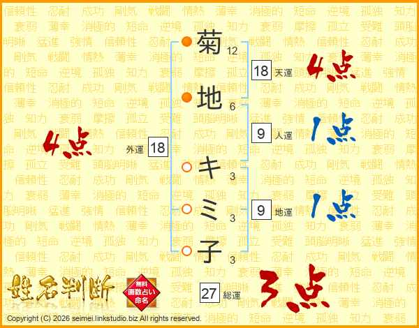 菊地キミ子さんの外運は18画の4点!