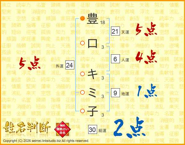 豊口キミ子さんの外運は24画の5点!