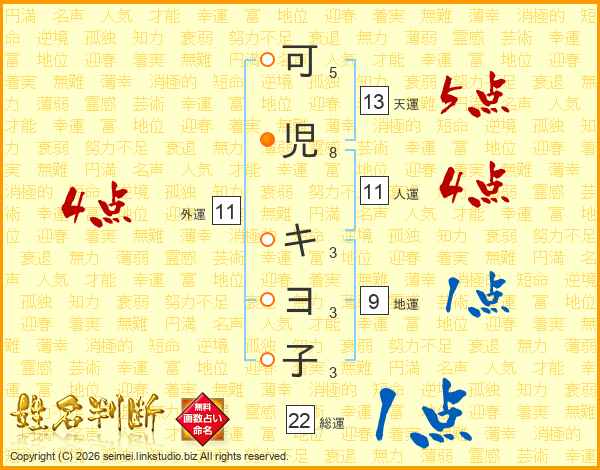 可(5画)児(8画) キ(3画)ヨ(3画)子(3画)