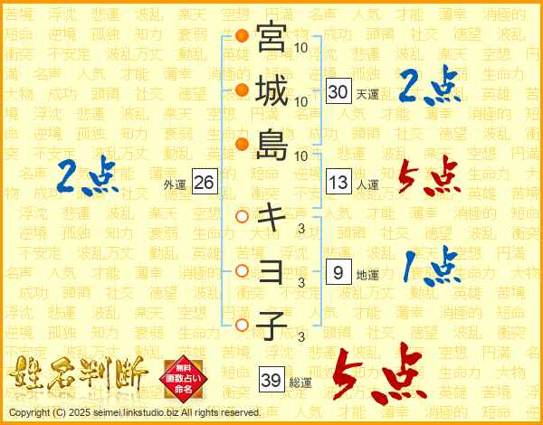 宮(10画)城(10画)島(10画) キ(3画)ヨ(3画)子(3画)