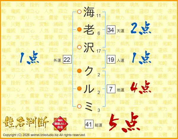 海老沢クルミさんの総運は41画の5点!