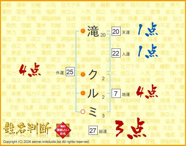 滝クルミさんの総運は27画の3点!