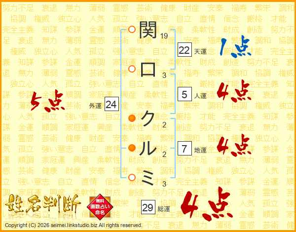 関口クルミさんの総運は29画の4点!