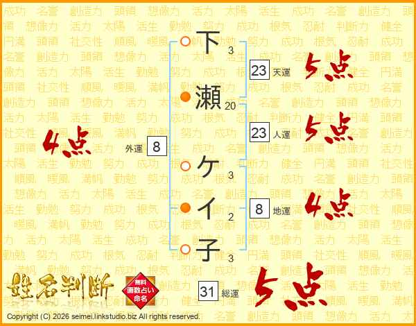 下瀬ケイ子さんの総運は31画の5点!