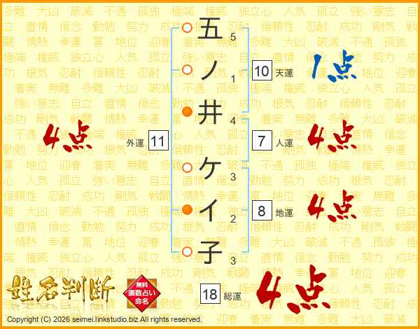 五ノ井ケイ子さんの総運は18画の4点!