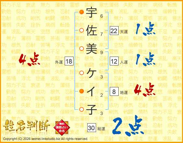 宇佐美ケイ子さんの外運は18画の4点!
