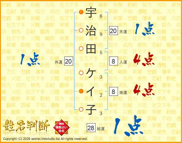 宇治田ケイ子さんの総運は28画の1点!