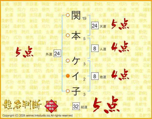 関本ケイ子さんの外運は24画の5点!
