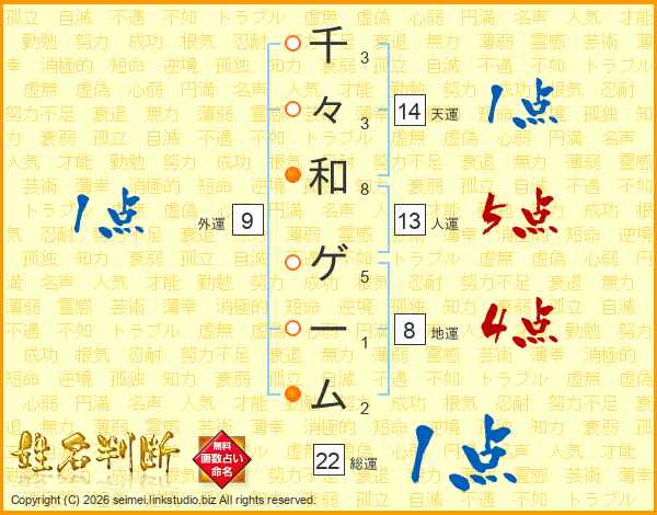 千々和ゲームさんの人運は13画の5点!