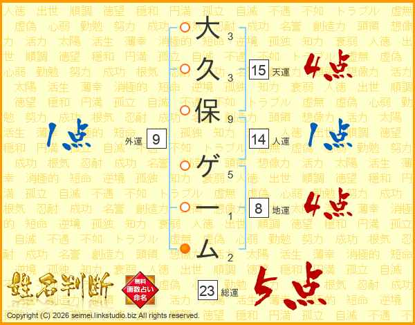 大久保ゲームさんの天運は15画の4点!