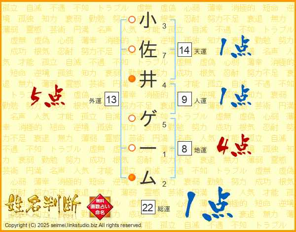 小佐井ゲームさんの人運は9画の1点!