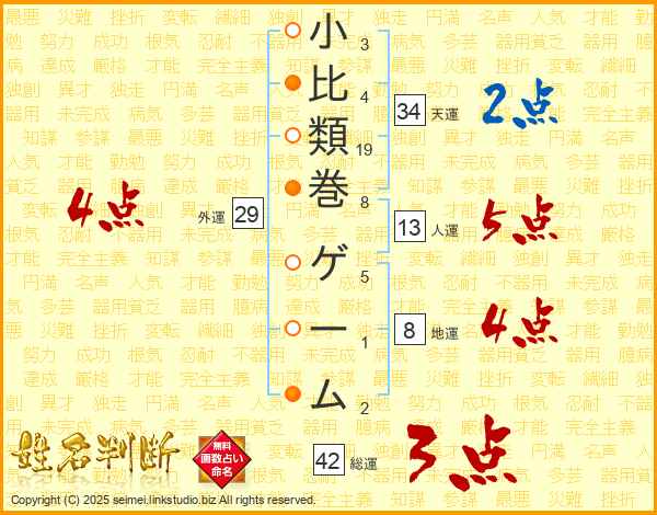 小(3画)比(4画)類(19画)巻(8画) ゲ(5画)ー(1画)ム(2画)