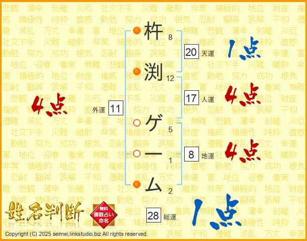 杵(8画)渕(12画) ゲ(5画)ー(1画)ム(2画)