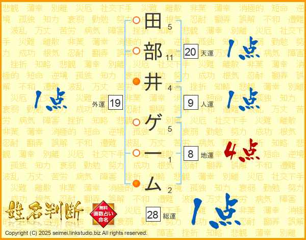 田部井ゲームさんの総運は28画の1点!
