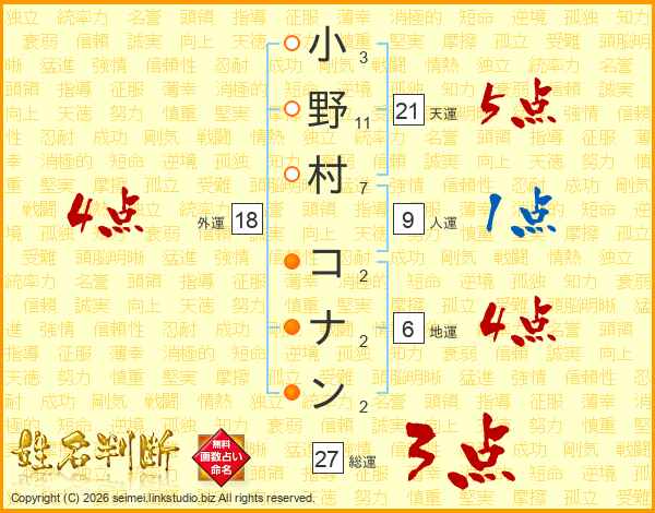 小野村コナンさんの総運は27画の3点!