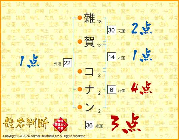 雜賀コナンさんの総運は36画の3点!