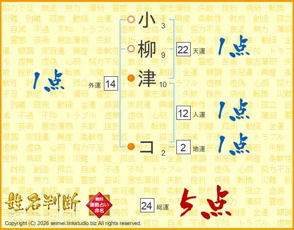 小柳津コさんの総運は24画の5点!