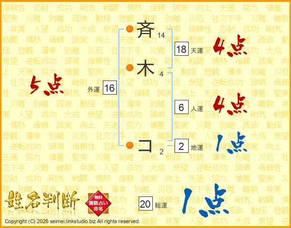 斉木コさんの天運は18画の4点!