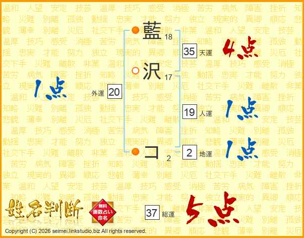 藍沢コさんの総運は37画の5点!