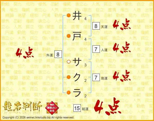 井(4画)戸(4画) サ(3画)ク(2画)ラ(2画)