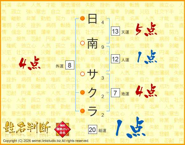 日南サクラさんの天運は13画の5点!