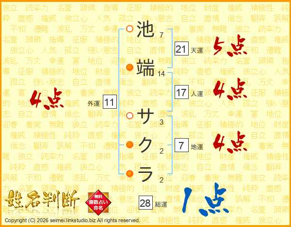 池端サクラさんの総運は28画の1点!