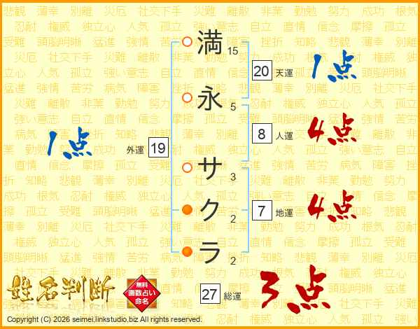 満永サクラさんの総運は27画の3点!