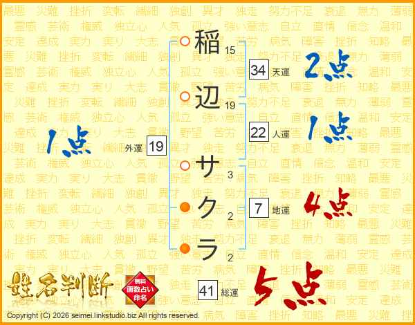 稲辺サクラさんの総運は41画の5点!