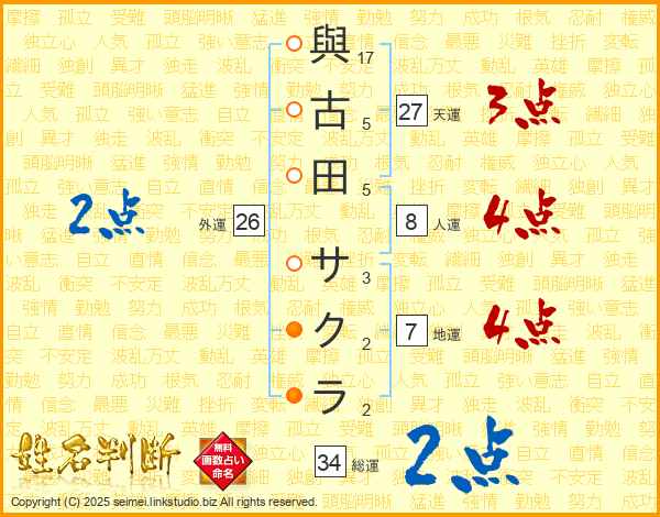 與古田サクラさんの総運は34画の2点!