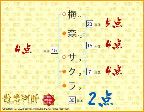 梅森サクラさんの外運は15画の4点!