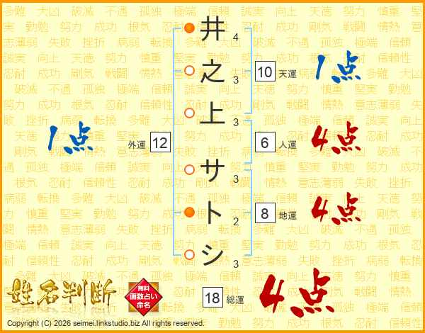井(4画)之(3画)上(3画) サ(3画)ト(2画)シ(3画)