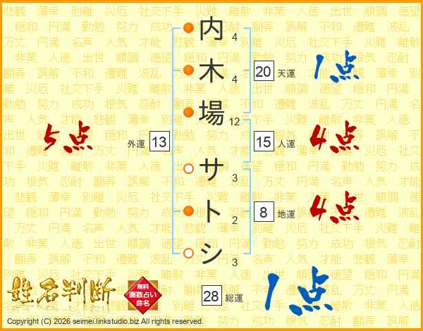 内木場サトシさんの総運は28画の1点!