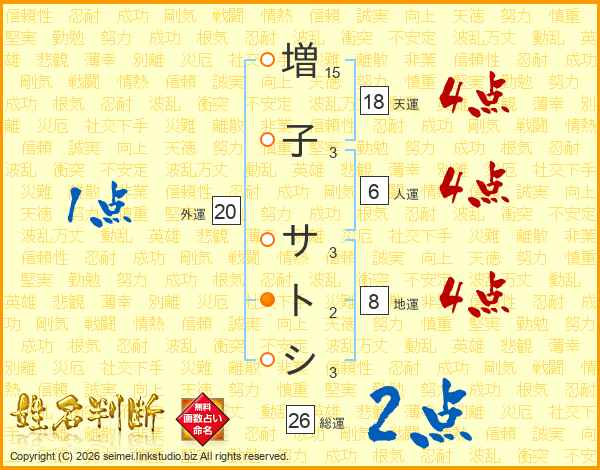 増子サトシさんの総運は26画の2点!