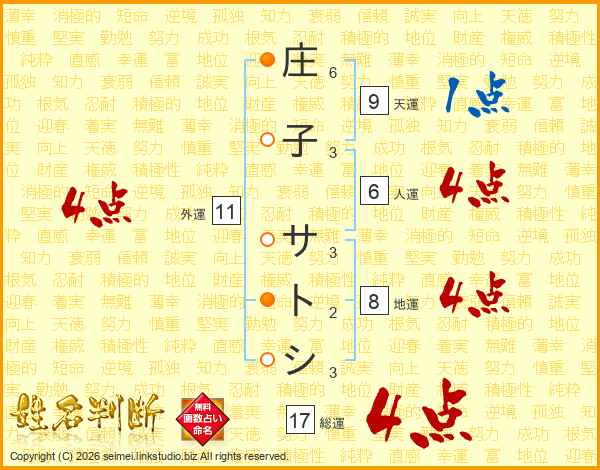 庄子サトシさんの総運は17画の4点!