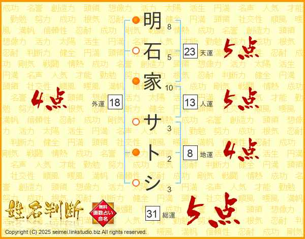 明(8画)石(5画)家(10画) サ(3画)ト(2画)シ(3画)