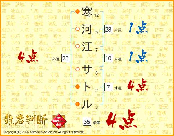 寒河江サトルさんの総運は35画の4点!