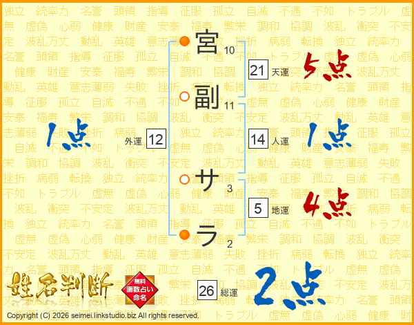 宮(10画)副(11画) サ(3画)ラ(2画)
