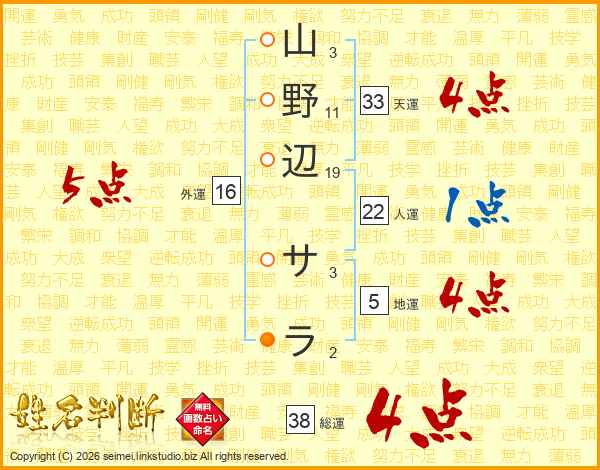 山野辺サラさんの総運は38画の4点!