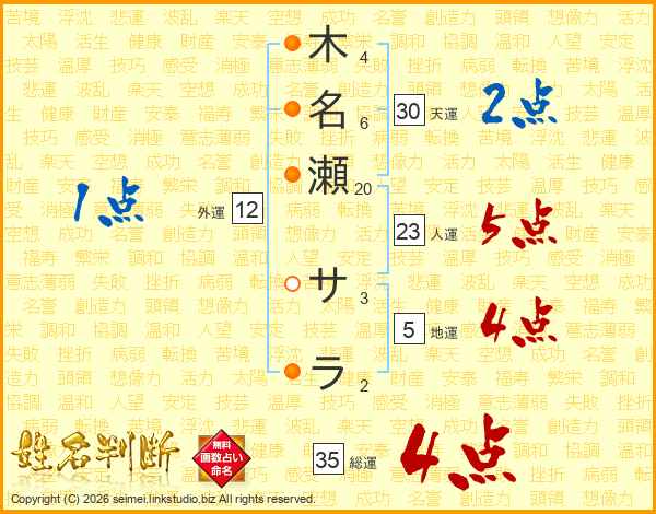 木名瀬サラさんの総運は35画の4点!