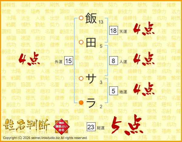 飯(13画)田(5画) サ(3画)ラ(2画)