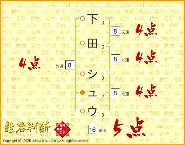 下(3画)田(5画) シ(3画)ュ(2画)ウ(3画)