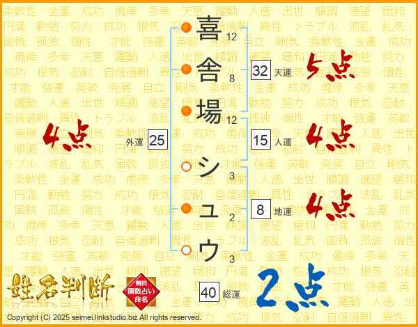 喜舎場シュウさんの総運は40画の2点!