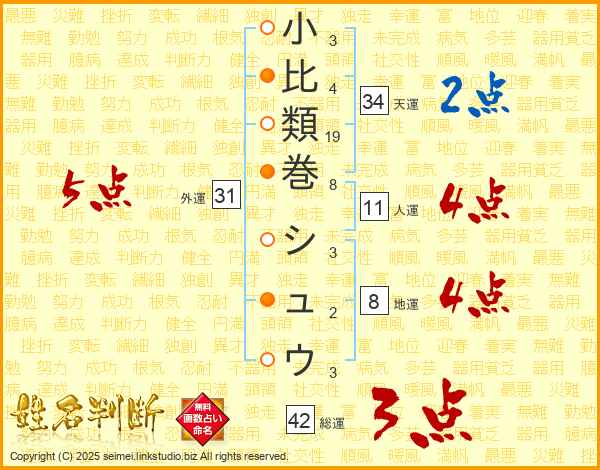 小(3画)比(4画)類(19画)巻(8画) シ(3画)ュ(2画)ウ(3画)