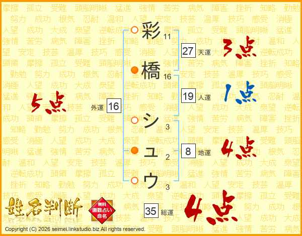 彩橋シュウさんの総運は35画の4点!