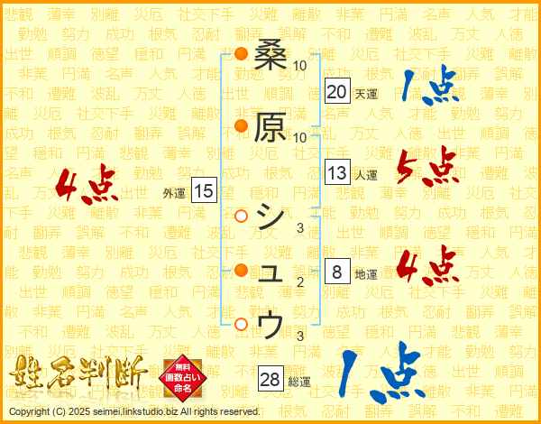 桑(10画)原(10画) シ(3画)ュ(2画)ウ(3画)