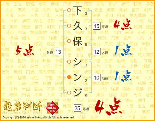 下久保シンジさんの総運は25画の4点!