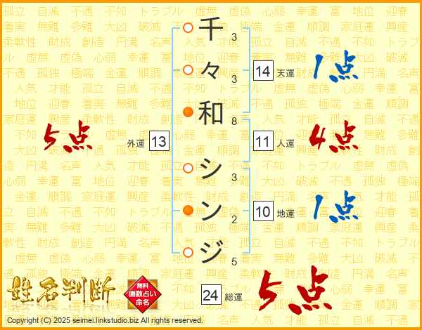 千(3画)々(3画)和(8画) シ(3画)ン(2画)ジ(5画)